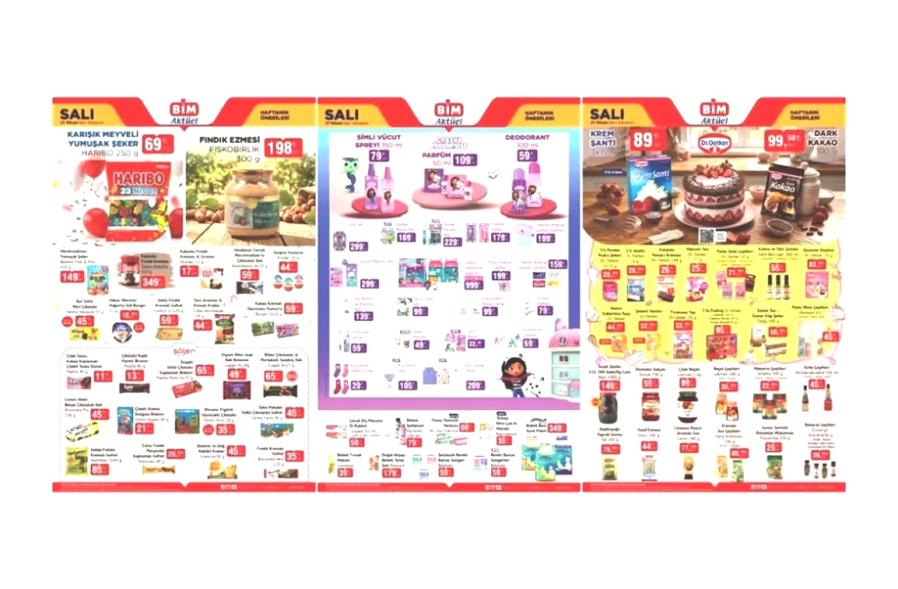 21 Nisan Bim kataloğu yayımlandı! Bu hafta zengin içerikleriyle öne çıkan Bim market, her bütçeye hitap eden seçenekler sunuyor. Bim Salı fırsatlarını araştıranlar için kişisel bakım ürünlerinden atıştırmalıklara kadar birçok ürün uygun fiyatlarla raflarda yer alıyor. Bim'deki bu hafta neler olduğunu öğrenmek için aktüel ürünler listemizi gözden geçirmeyi ihmal etmeyin!